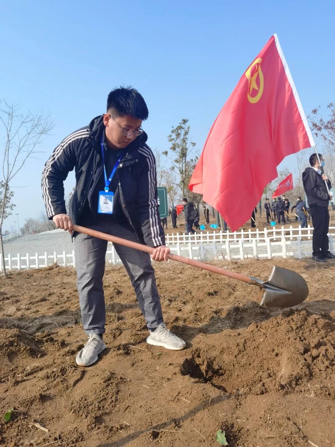 通過參加此次活動,不僅鍛煉了我院青年員工間的團結(jié)協(xié)作能力,更是為綠色家園增添了一份希望。種植一棵樹,奉獻一份愛,青春與綠色同行!